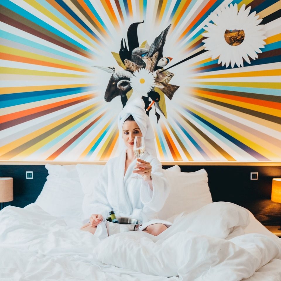 Wir bieten 124 umweltfreundliche Doppelzimmer von 18 m² bis 38 m². Alle Zimmer sind mit Wasserkocher, Flatscreen TV mit Chromecast, luxuriösen Betten und modernen Möbeln ausgestattet. Der bekannte färingische Künstler Edward Fuglø hat jedes Zimmer individuell dekoriert. Genießen Sie bei uns einen umweltfreundlichen und ungezwungenen Aufenthalt.