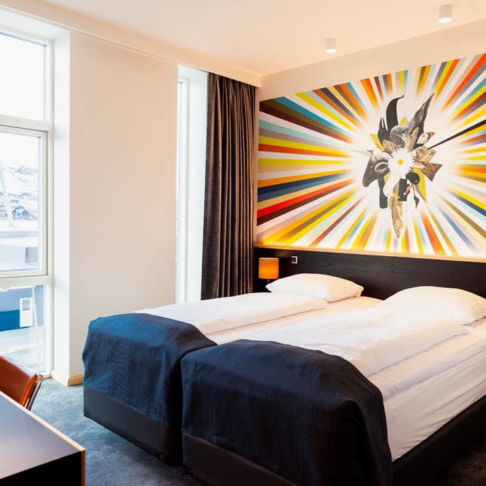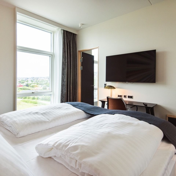Alle unsere Zimmer sind ausgesprochen umweltfreundlich und mit qualitativ hochwertigen Möbeln ausgestattet. Wir haben Wert auf jedes Detail gelegt, um unseren Gästen einen angenehmen, grünen und entspannten Aufenthalt zu gewährleisten. Das Hotel bietet 116 Doppelzimmer, und 6 Superior-Zimmer, die auch behindertengerecht sind, sowie 2 große Suiten. Zimmer können online auf dieser Website gebucht werden, aber selbstverständlich können Sie gerne auch unter Tel. +298 30 92 00 buchen oder per Email an booking@hotelbrandan.fo.