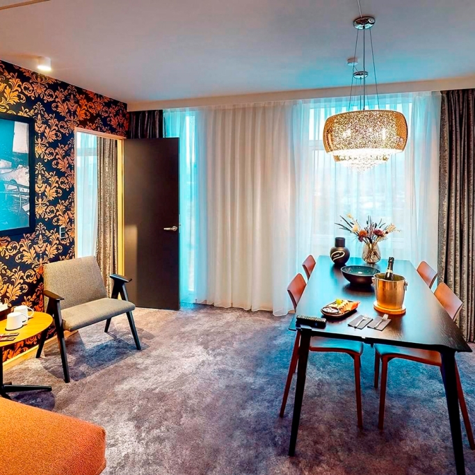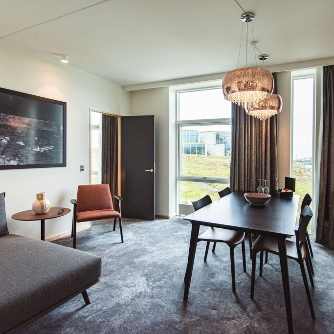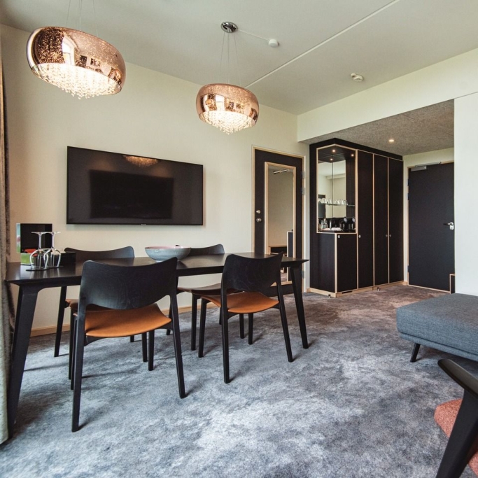 Unsere Suiten sind moderne Zimmer mit großzügigem Platzangebot und einem schönen Blick über Torshavn. Sie verfügen über geräumige Badezimmer mit Badewanne, Dusche sowie doppeltem Waschbecken und einer modernen Lounge mit Sofa, Sesseln, Esstisch und großem Schrank, in dem Gäste sich auch mit Kaffee oder Tee versorgen können.