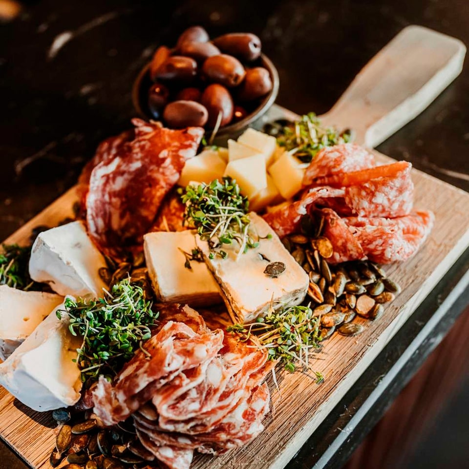 European Cheeses & Sausages, olives, bread & butter ,smoked almonds